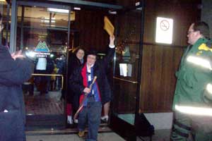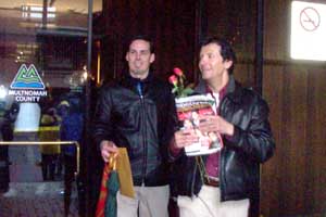 A couple walks out of the building with the marriage certificate (in the yellow envelope)--and Entertainment Weekly special issue dedicated to the end of "Friends"--in hand. | Another couple proudly showing their marriage certificate as they walk out of the County building. |