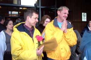 Volunteers from Basic Rights Oregon are helping people fill out forms. | It makes me cry to watch people exchange vows and rings. |